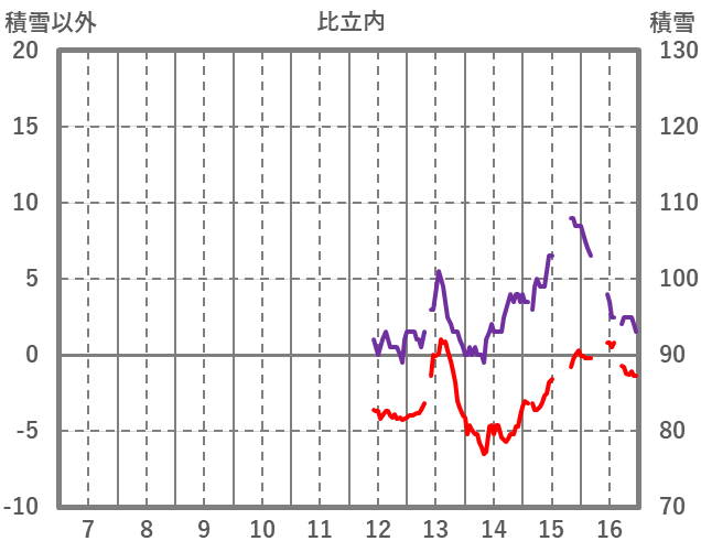 | 日 | 時 | 気温 | 降水 | 風向/風速 | 日照 | 積雪 | 降雪 |