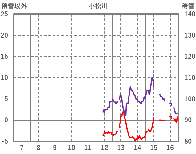 | 日 | 時 | 気温 | 降水 | 風向/風速 | 日照 | 積雪 | 降雪 |