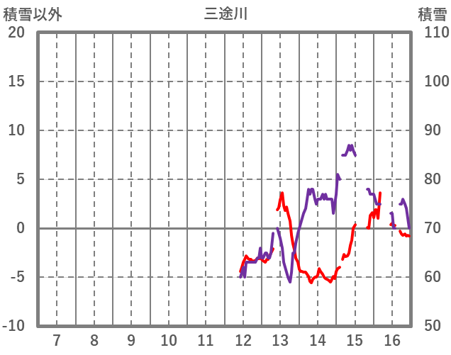 | 日 | 時 | 気温 | 降水 | 風向/風速 | 日照 | 積雪 | 降雪 |