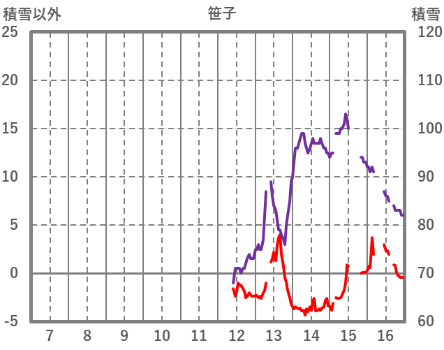 | 日 | 時 | 気温 | 降水 | 風向/風速 | 日照 | 積雪 | 降雪 |