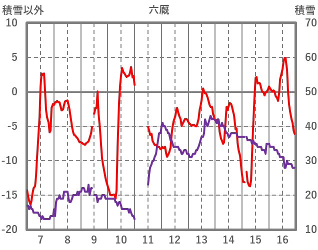 | 日 | 時 | 気温 | 降水 | 風向/風速 | 日照 | 積雪 | 降雪 |