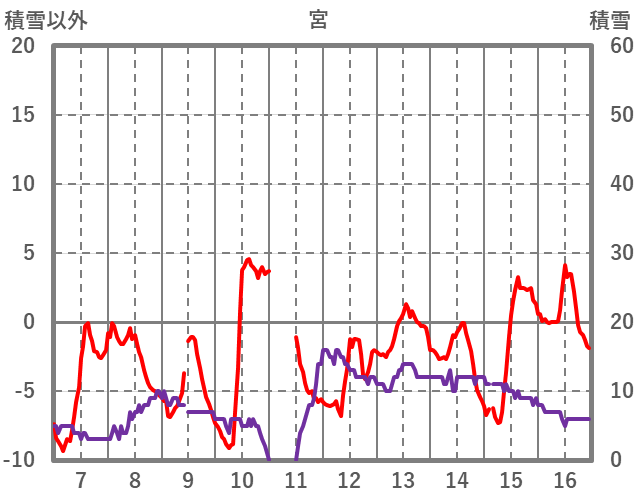 | 日 | 時 | 気温 | 降水 | 風向/風速 | 日照 | 積雪 | 降雪 |