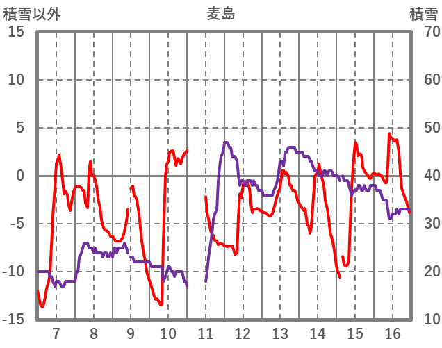 | 日 | 時 | 気温 | 降水 | 風向/風速 | 日照 | 積雪 | 降雪 |
