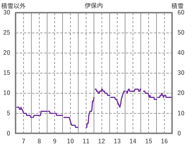 | 日 | 時 | 気温 | 降水 | 風向/風速 | 日照 | 積雪 | 降雪 |