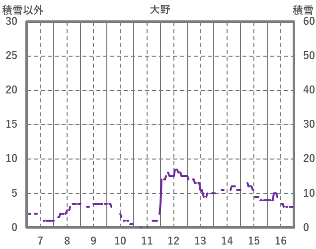 | 日 | 時 | 気温 | 降水 | 風向/風速 | 日照 | 積雪 | 降雪 |