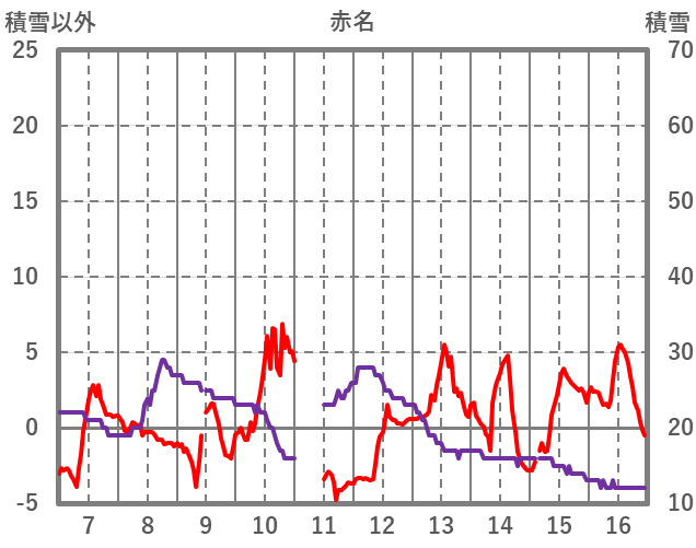 | 日 | 時 | 気温 | 降水 | 風向/風速 | 日照 | 積雪 | 降雪 |