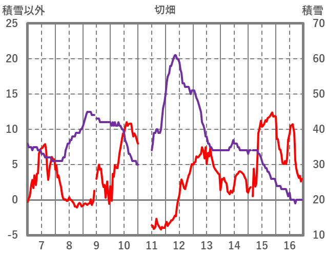 | 日 | 時 | 気温 | 降水 | 風向/風速 | 日照 | 積雪 | 降雪 |