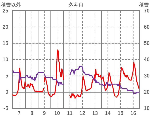 | 日 | 時 | 気温 | 降水 | 風向/風速 | 日照 | 積雪 | 降雪 |