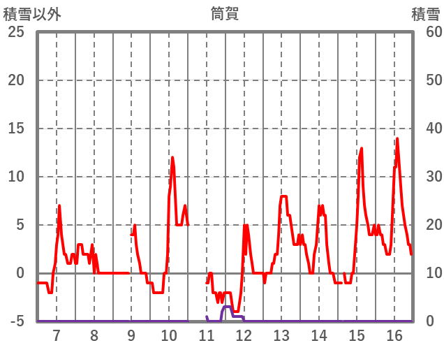 | 日 | 時 | 気温 | 降水 | 風向/風速 | 日照 | 積雪 | 降雪 |