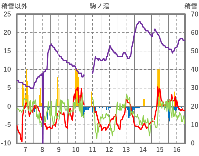 | 日 | 時 | 気温 | 降水 | 風向/風速 | 日照 | 積雪 | 降雪 |