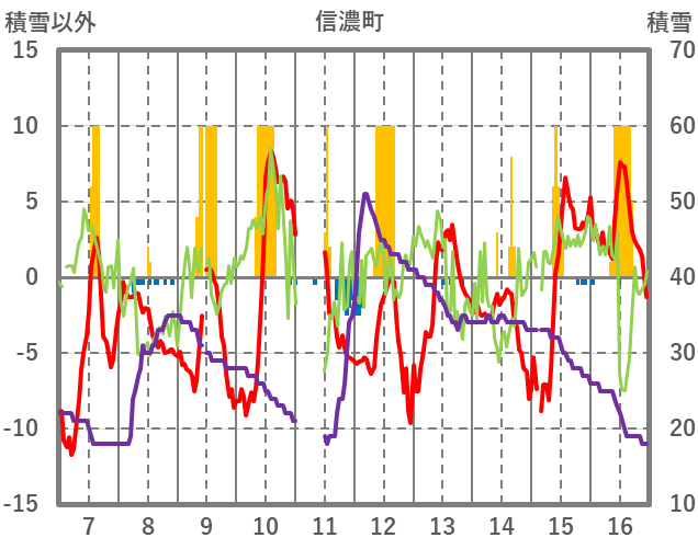 | 日 | 時 | 気温 | 降水 | 風向/風速 | 日照 | 積雪 | 降雪 |