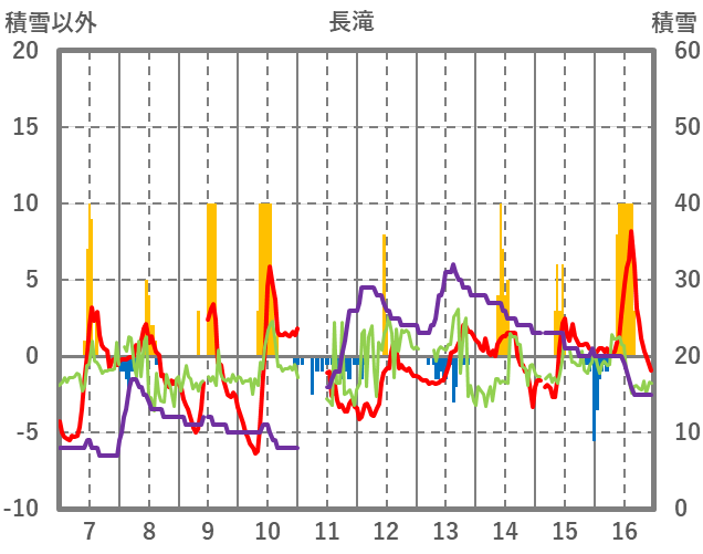 | 日 | 時 | 気温 | 降水 | 風向/風速 | 日照 | 積雪 | 降雪 |