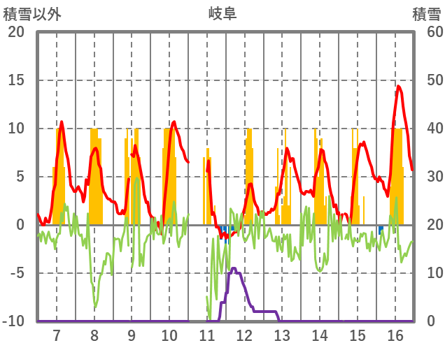 | 日 | 時 | 気温 | 降水 | 風向/風速 | 日照 | 積雪 | 降雪 |