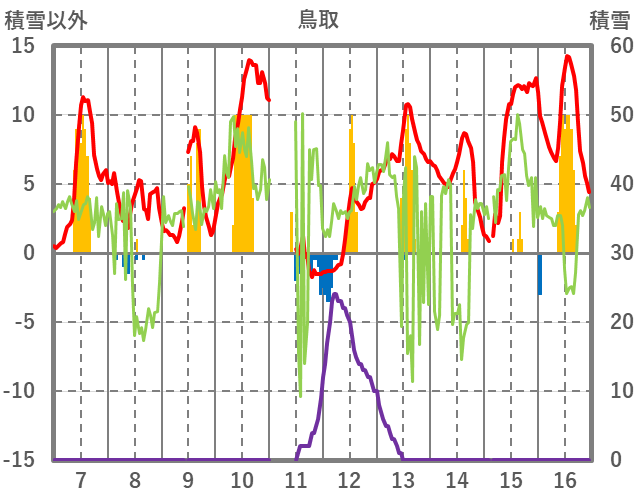 | 日 | 時 | 気温 | 降水 | 風向/風速 | 日照 | 積雪 | 降雪 |