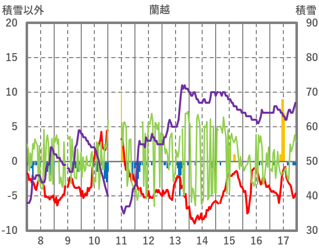 | 日 | 時 | 気温 | 降水 | 風向/風速 | 日照 | 積雪 | 降雪 |