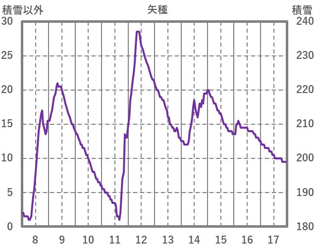 | 日 | 時 | 気温 | 降水 | 風向/風速 | 日照 | 積雪 | 降雪 |