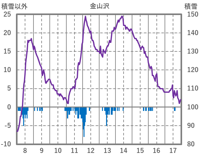 | 日 | 時 | 気温 | 降水 | 風向/風速 | 日照 | 積雪 | 降雪 |