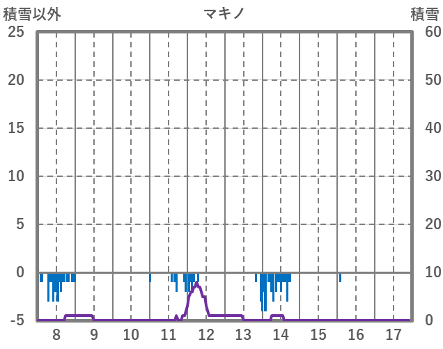 | 日 | 時 | 気温 | 降水 | 風向/風速 | 日照 | 積雪 | 降雪 |