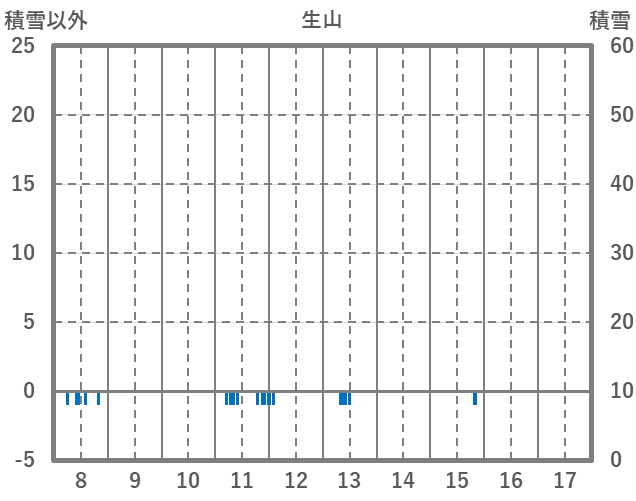 | 日 | 時 | 気温 | 降水 | 風向/風速 | 日照 | 積雪 | 降雪 |