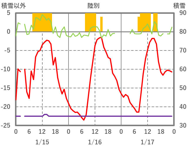 | 日 | 時 | 気温 | 降水 | 風向/風速 | 日照 | 積雪 | 降雪 |