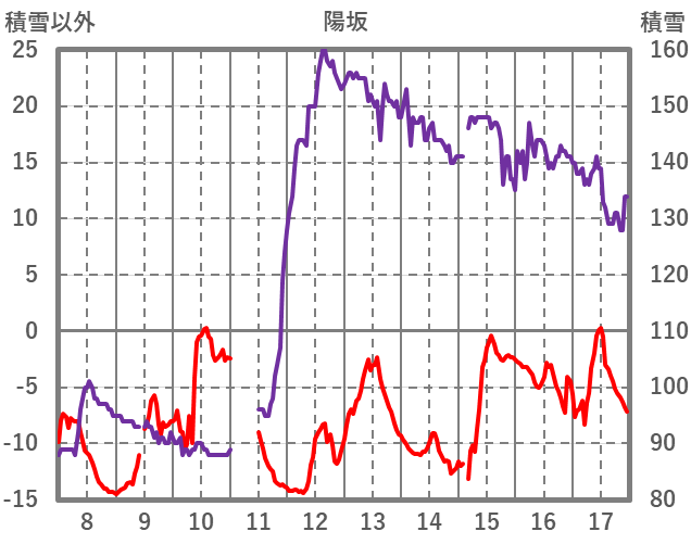 | 日 | 時 | 気温 | 降水 | 風向/風速 | 日照 | 積雪 | 降雪 |