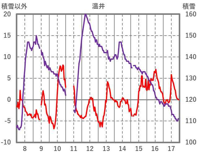 | 日 | 時 | 気温 | 降水 | 風向/風速 | 日照 | 積雪 | 降雪 |