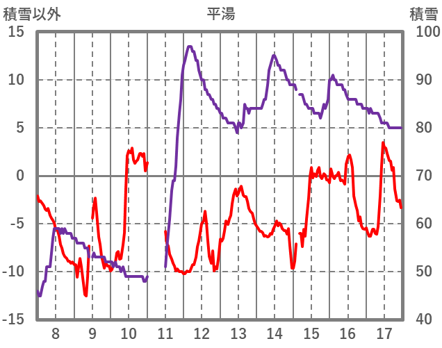 | 日 | 時 | 気温 | 降水 | 風向/風速 | 日照 | 積雪 | 降雪 |