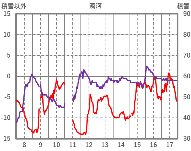| 日 | 時 | 気温 | 降水 | 風向/風速 | 日照 | 積雪 | 降雪 |