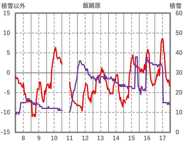 | 日 | 時 | 気温 | 降水 | 風向/風速 | 日照 | 積雪 | 降雪 |