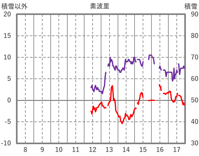 | 日 | 時 | 気温 | 降水 | 風向/風速 | 日照 | 積雪 | 降雪 |