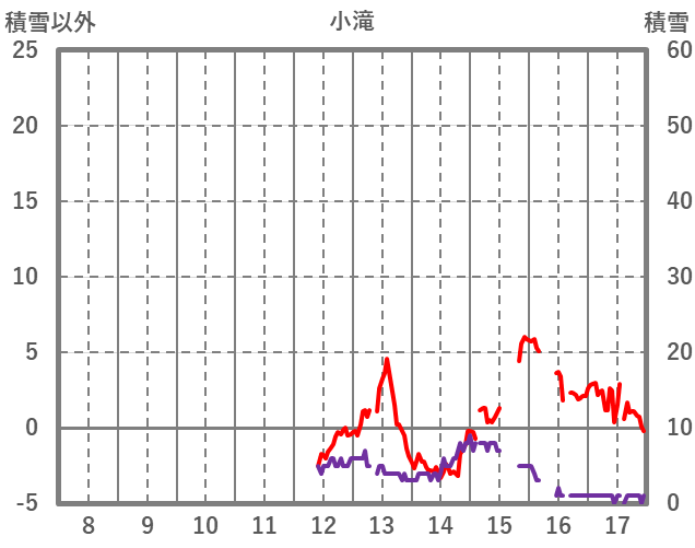 | 日 | 時 | 気温 | 降水 | 風向/風速 | 日照 | 積雪 | 降雪 |