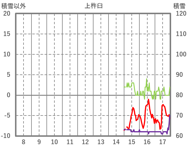 | 日 | 時 | 気温 | 降水 | 風向/風速 | 日照 | 積雪 | 降雪 |