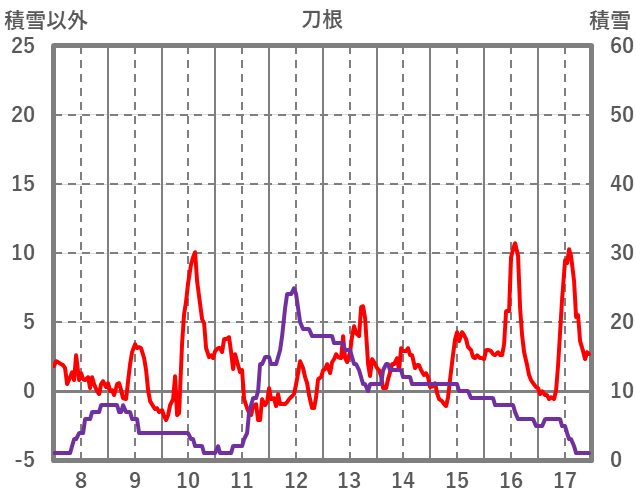 | 日 | 時 | 気温 | 降水 | 風向/風速 | 日照 | 積雪 | 降雪 |