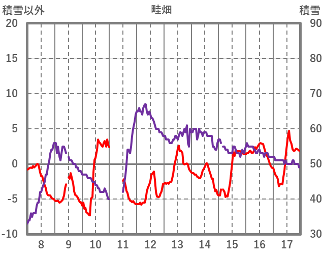 | 日 | 時 | 気温 | 降水 | 風向/風速 | 日照 | 積雪 | 降雪 |