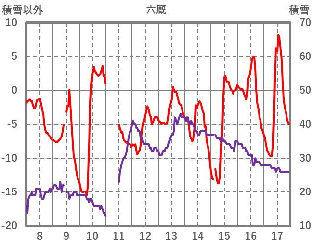 | 日 | 時 | 気温 | 降水 | 風向/風速 | 日照 | 積雪 | 降雪 |