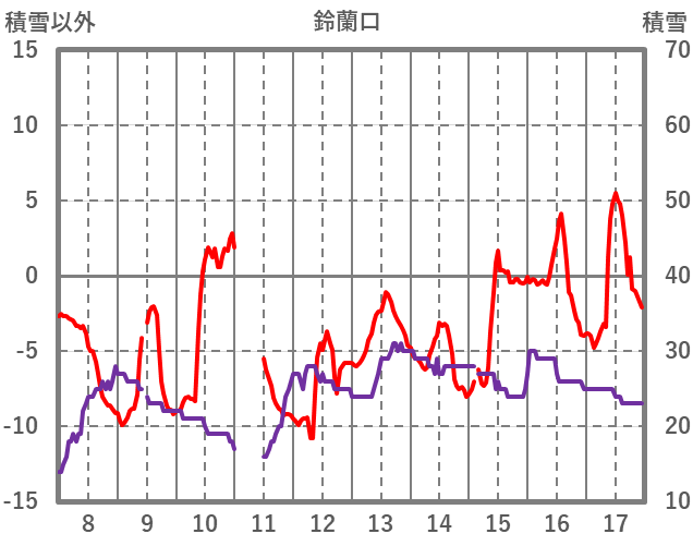 | 日 | 時 | 気温 | 降水 | 風向/風速 | 日照 | 積雪 | 降雪 |