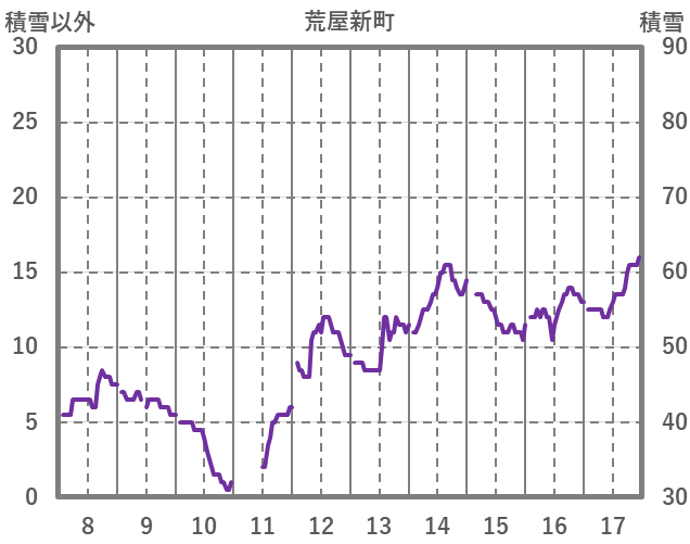 | 日 | 時 | 気温 | 降水 | 風向/風速 | 日照 | 積雪 | 降雪 |