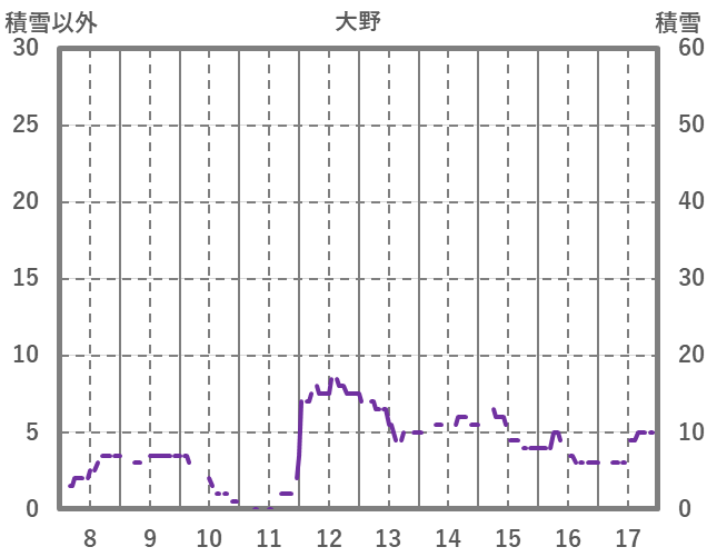 | 日 | 時 | 気温 | 降水 | 風向/風速 | 日照 | 積雪 | 降雪 |