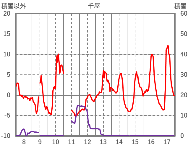 | 日 | 時 | 気温 | 降水 | 風向/風速 | 日照 | 積雪 | 降雪 |