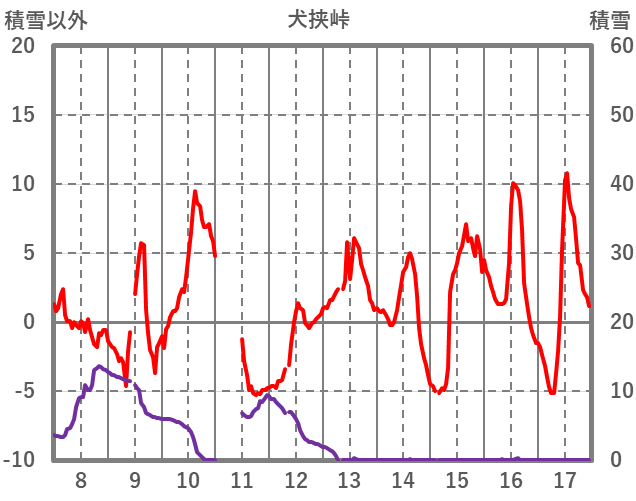 | 日 | 時 | 気温 | 降水 | 風向/風速 | 日照 | 積雪 | 降雪 |