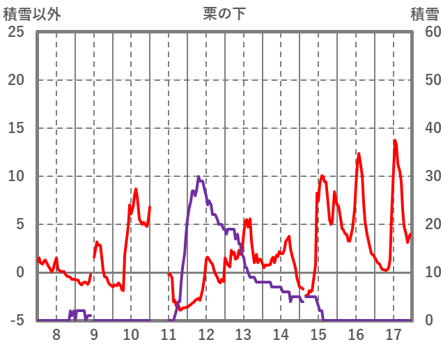 | 日 | 時 | 気温 | 降水 | 風向/風速 | 日照 | 積雪 | 降雪 |