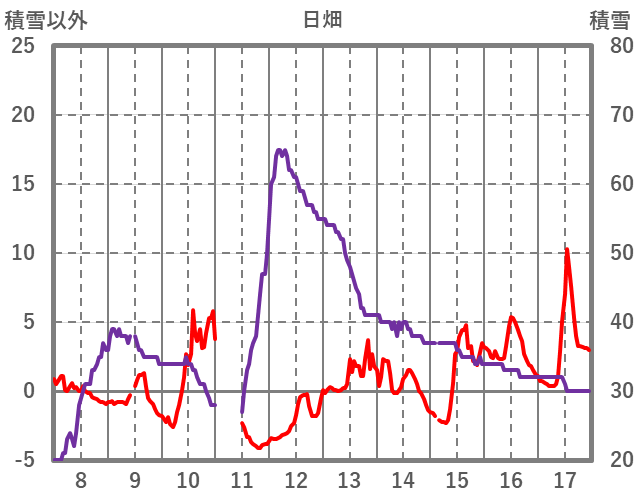 | 日 | 時 | 気温 | 降水 | 風向/風速 | 日照 | 積雪 | 降雪 |