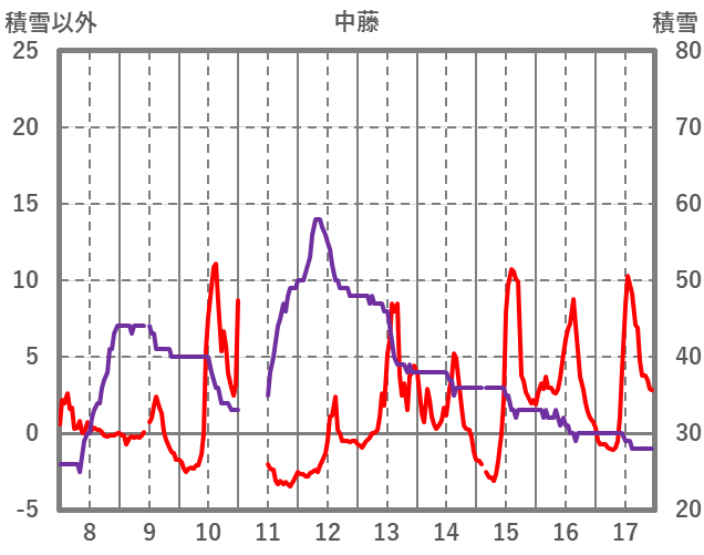 | 日 | 時 | 気温 | 降水 | 風向/風速 | 日照 | 積雪 | 降雪 |