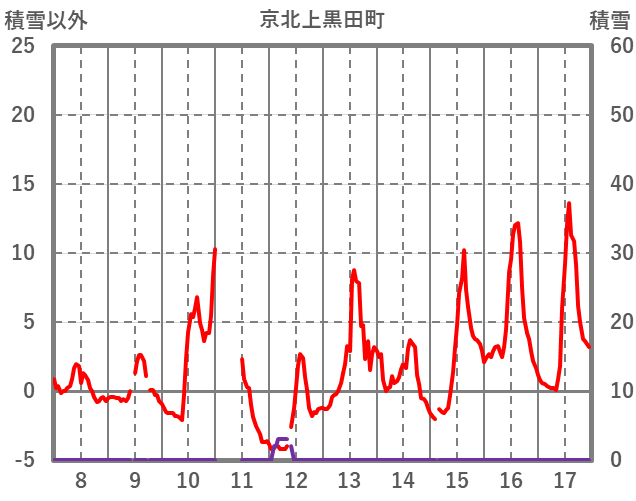 | 日 | 時 | 気温 | 降水 | 風向/風速 | 日照 | 積雪 | 降雪 |