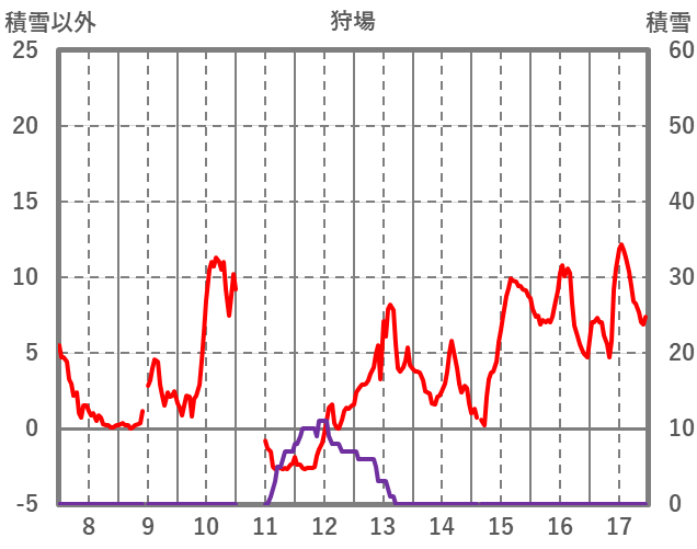 | 日 | 時 | 気温 | 降水 | 風向/風速 | 日照 | 積雪 | 降雪 |