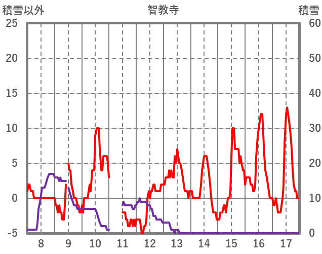 | 日 | 時 | 気温 | 降水 | 風向/風速 | 日照 | 積雪 | 降雪 |