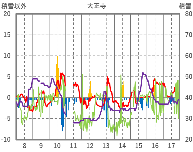 | 日 | 時 | 気温 | 降水 | 風向/風速 | 日照 | 積雪 | 降雪 |