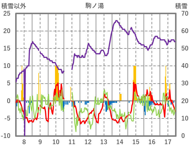 | 日 | 時 | 気温 | 降水 | 風向/風速 | 日照 | 積雪 | 降雪 |
