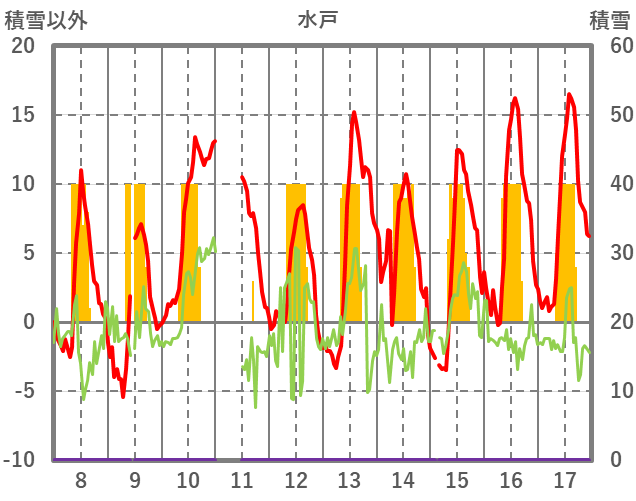 | 日 | 時 | 気温 | 降水 | 風向/風速 | 日照 | 積雪 | 降雪 |