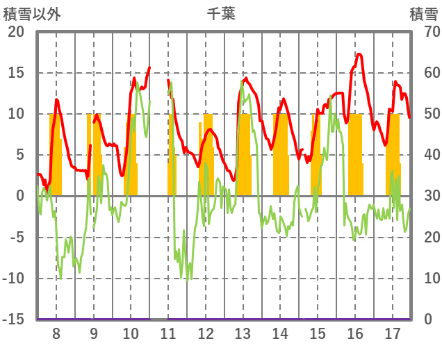 | 日 | 時 | 気温 | 降水 | 風向/風速 | 日照 | 積雪 | 降雪 |
